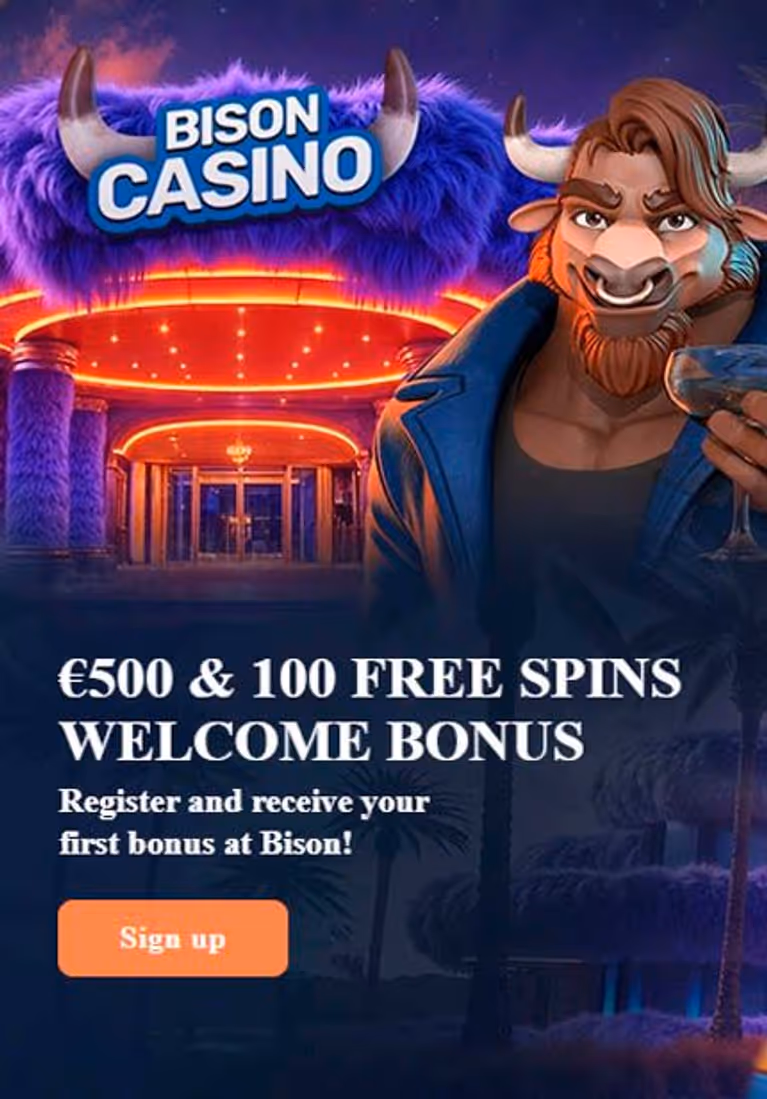 Bison Casino is pushing a bold welcome package: a 100% match up to $/€500 plus 100 free spins. The headline looks generous — double your first deposit immediately and get spins that can add concrete playtime — but the real value depends on how you use it. The offer requires manual activation after registration and carries standard wagering conditions, so reading the small print changes the picture quickly.
